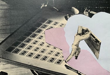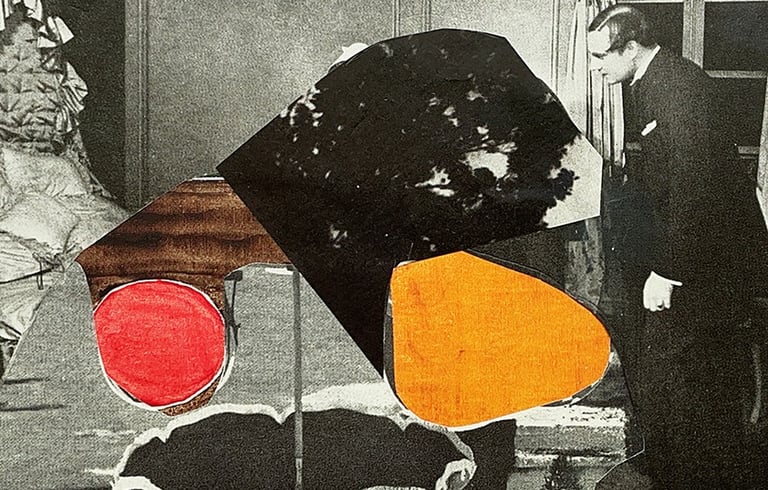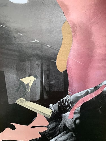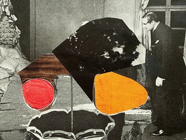 Past Lives, New Layers explores the friction between memory and imagination—where vintage street scenes, clipped from forgotten magazines, are reborn in surreal, abstract compositions. By layering figures of the past into bold new contexts, each collage becomes a portal to a reimagined history—part truth, part dream, entirely untethered from time.